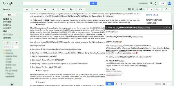 昨天終於收到全南大學CNU的通知信囉