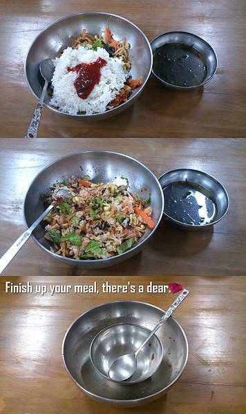 我乖乖吃完了我們的第一頓正宗只有野菜的拌飯!!!