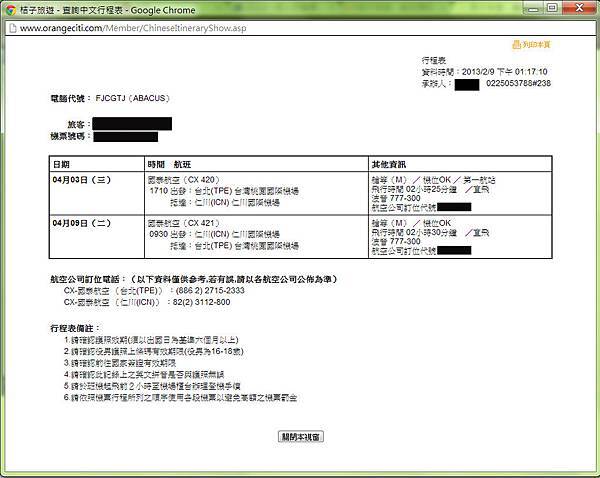p.s比價過後(雄獅12100、桔子11657、東南12300)所以選定向桔子旅行社購買(快CALL他) 訂票成功後會有的行程表噢